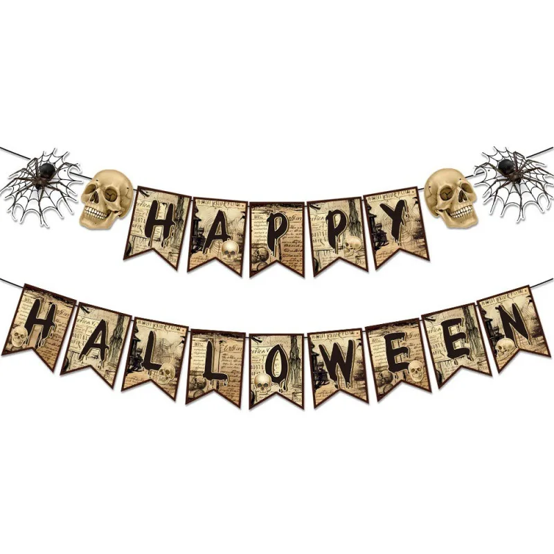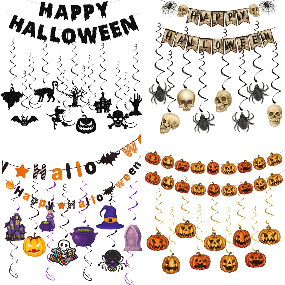 Happy Halloween Banner wirbelnde Dekorationen Kürbis Geist Fledermaus Schädel hängen Wirbel für Outdoor Home Halloween Party Dekorationen