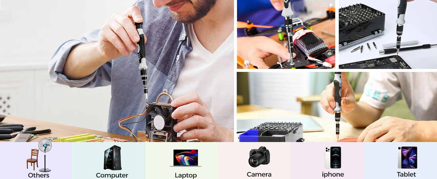 Ob es sich um einen Computer, ein Mobiltelefon, eine Spiele konsole oder ein Haushalts gerät handelt, das profession elle Mini-Schraubendreher-Set kann problemlos damit umgehen. Sein tragbares Design ist nicht nur ein Reparatur werkzeug, sondern auch ein tolles Geschenk, das für alle geeignet ist, die Lebens qualität verfolgen.